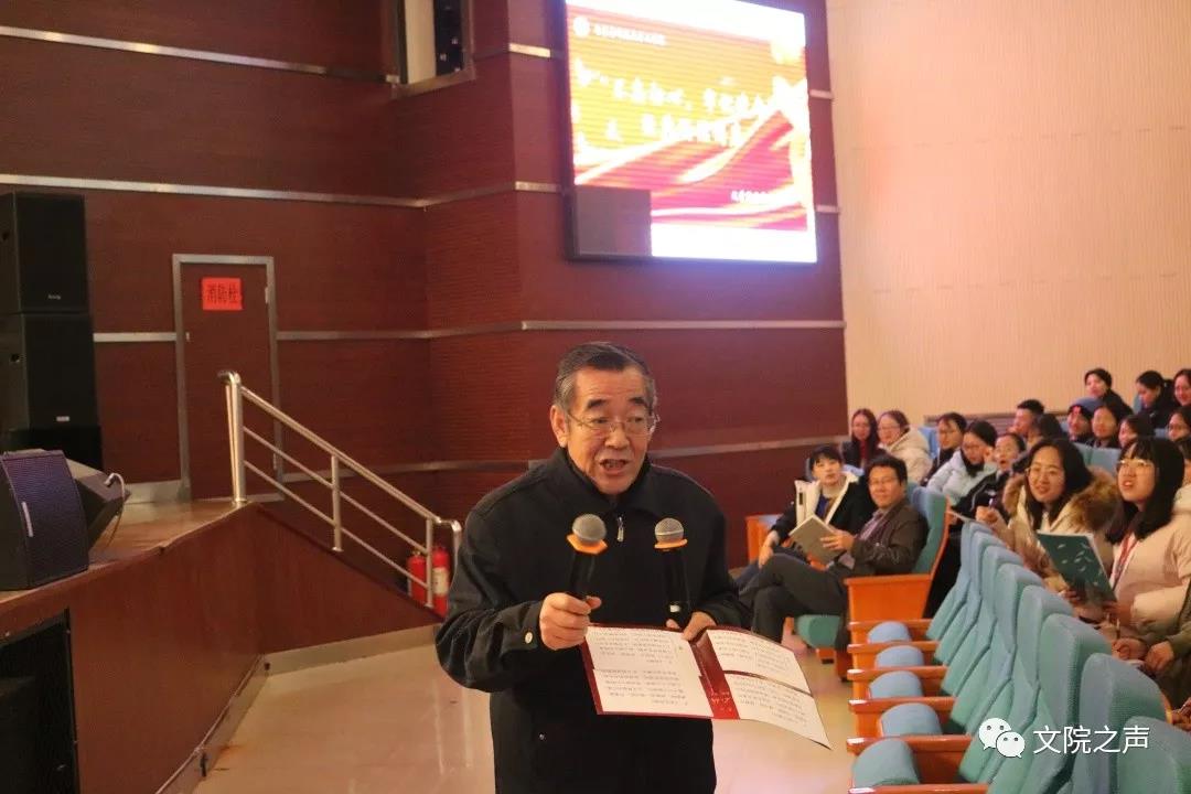 2019年11月28日下午14时,js6668金沙登录入口“不忘初心,牢记使命”主题教育系列活动之传“诵”经典在学院楼报告厅举行。本场经典诵读活动,特邀我院退休教师杨燕民教授主讲,js6668金沙登录入口副院长石海光副教授主持。