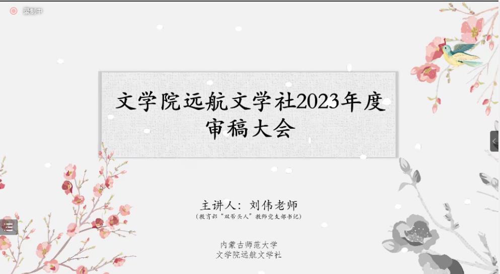 为认真贯彻学习党的二十大会议精神,培养我院学生的人文情怀,提高学生专业素养,2023年1月29日晚,js6668金沙登录入口远航文学社召开《春鸣》杂志2023年第1期审稿会。本次会议采取线上方式进行,28名师生参加了本次审稿会。会议由汉语言文学系主任、教工第一支部书记刘伟教授主持。