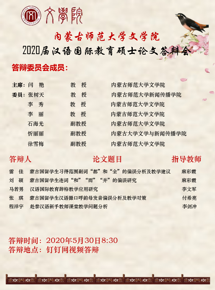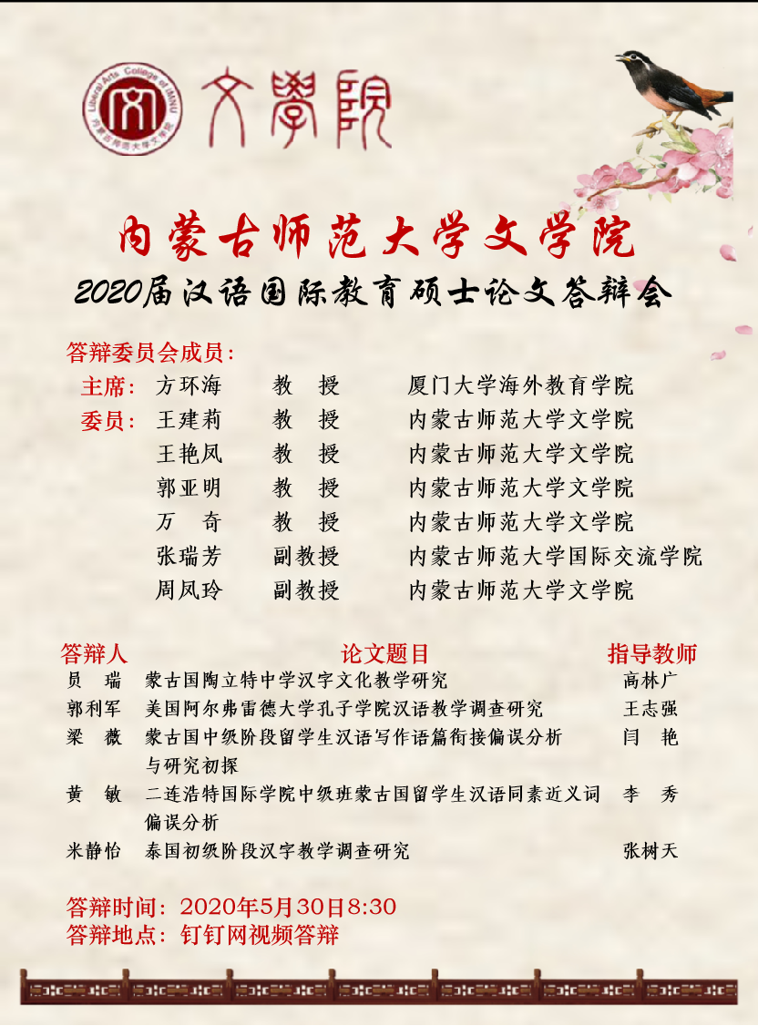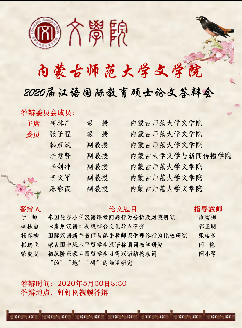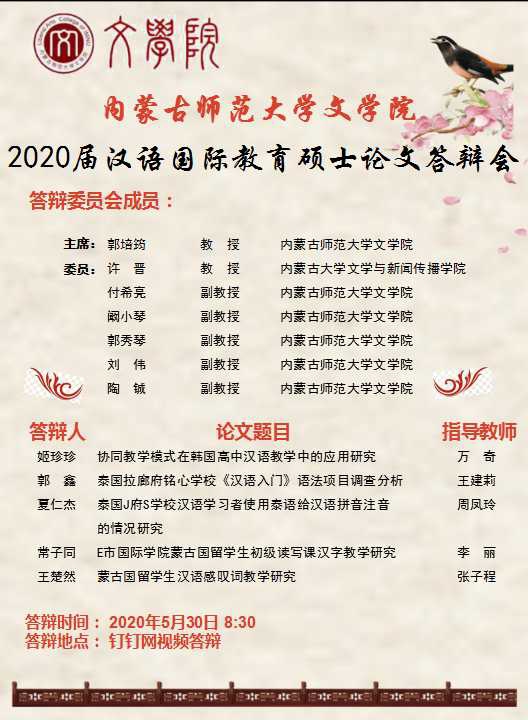 js6668金沙登录入口2020届汉语国际教育硕士论文答辩会宣传海报