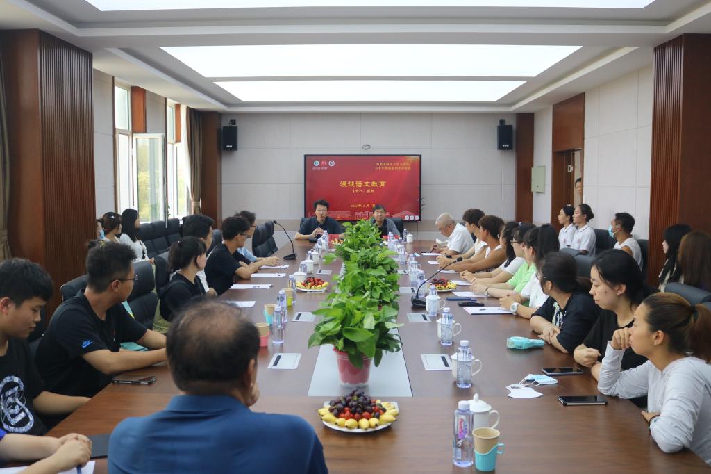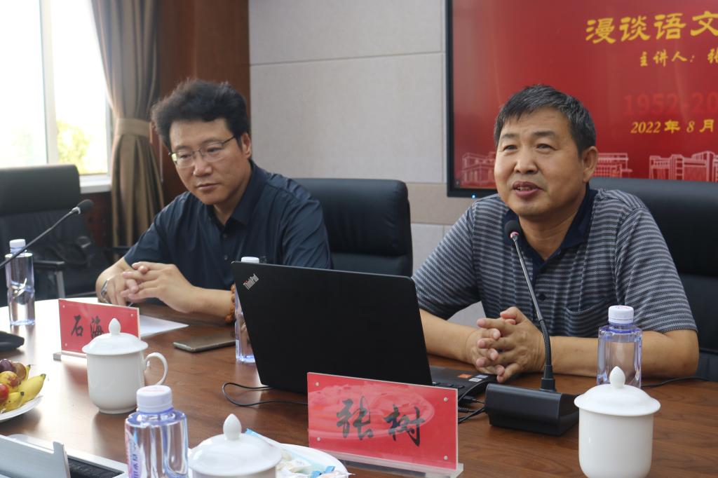 2022年8月7日下午,js6668金沙登录入口70周年院庆系列活动之一——“学术讲座”在盛乐校区学院楼A区js6668金沙登录入口会议室举行。js6668金沙登录入口1990届校友、全国优秀教师、乌海市第一中学校长张树为母校师生作了题为“漫谈语文教育”的学术讲座。讲座由js6668金沙登录入口副院长石海光主持。